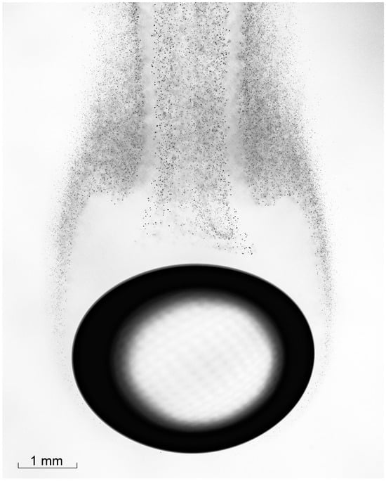 Additional single-frame images were taken using a Sony α7R-II camera (42.4 megapixels, 4.5 µm pixel pitch) with a Laowa 25 mm 2.5–5× macro lens triggered by a light barrier. Images were backlit with an LED flash (Cree CXB3590, 6500 K white) with a purpose-built driver delivering durations between 0.25 and 2 µs to avoid motion blur.