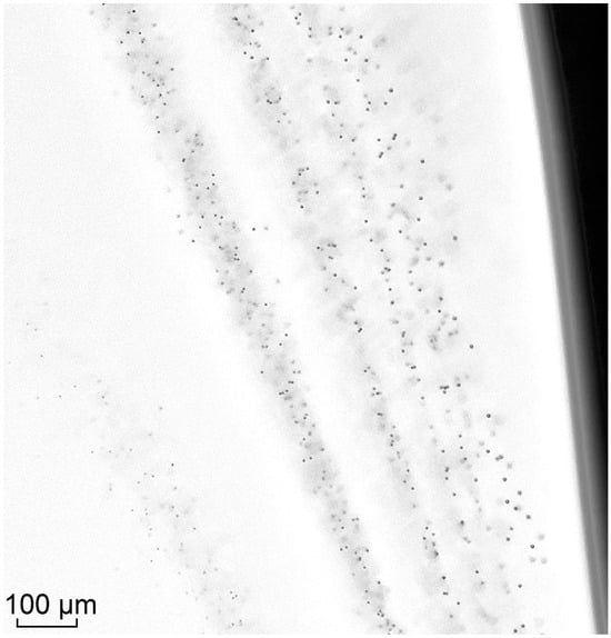 Rings of silver chromate, precipitated from silver nitrate and potassium chromate in a gelatine film due to the Liesegang effect (reproduced from Beneke, 2006 [], in turn from Liesegang, 1896 []).