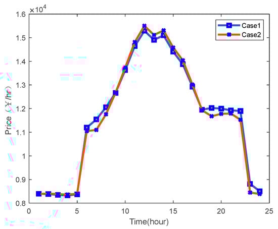 Figure 16 illustrates that in Case 2, the generation cost increased from 9:00 to 18:00, showing an average increase of 0.93%. However, in other time periods, the generation cost decreased by an average of 1.61%. As a result, the daily average generation cost experienced a reduction of 0.35%.