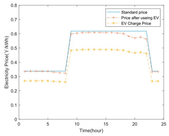 Furthermore, considering the electricity price, it can be observed from Figure 17 that when using the conventional method of only considering the active electricity price charging, users on the electricity side needed to pay more for electricity. However, by applying the reactive power capacity scheduling method of EVs to the microgrid, the electricity price on the power side was reduced by an average of 2.88%. Additionally, the charging cost for EV users was reduced significantly by 21.29% on average. These results highlight the benefits of implementing the reactive power capacity scheduling method for EVs in terms of reducing both electricity prices for consumers and the charging costs for EV users.