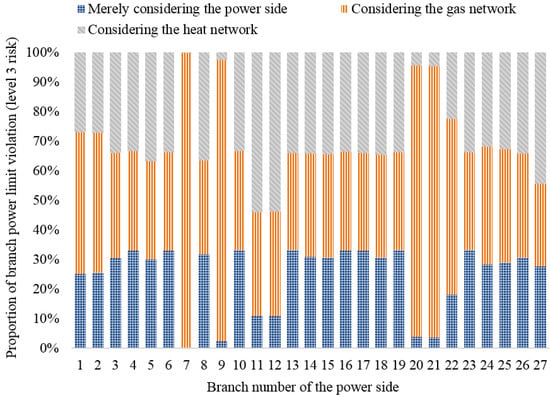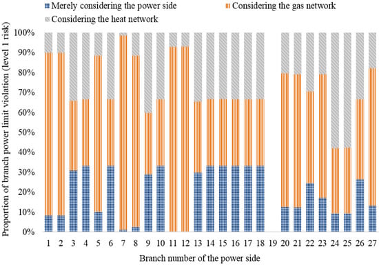 - Compared with merely considering the operation of the power side, all levels of line flow violation risks increase when the interaction with the gas network and the heat network is considered.