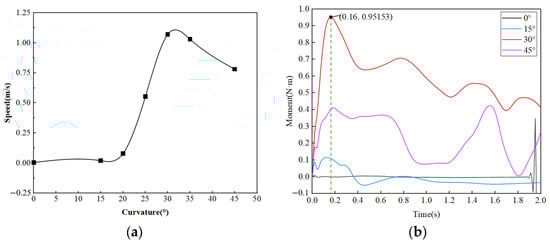 Comparison and analysis of aerodynamic performance with different curvature degrees. (a) The variation in speed with curvature. (b) The variation in torque with curvature.