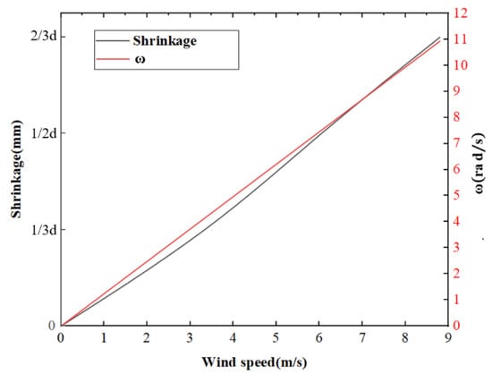 Changes in shrinkage and speed of drag-type blades with wind speed.