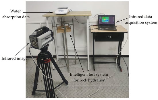- In this study, the self-developed intelligent test system for rock hydration combined with an infrared thermal imager was used to conduct liquid water adsorption experiments on rock samples at different initial temperatures. The curve of the hydration absorption process could be fitted with an exponential function, and the change trend of the curve of the hydration absorption characteristics of the rocks first rapidly increased, then slowly increased, and finally remained unchanged.