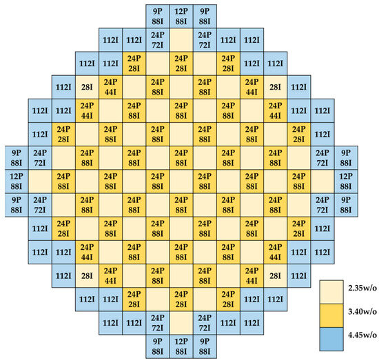 21]. The AP1000 reactor core is loaded with three fuel assemblies at different enrichment levels staggered in a tessellated pattern, as shown in