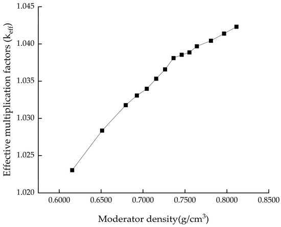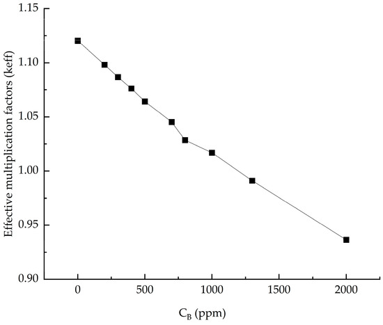 26]. In the second step, the variation of reactivity was investigated computationally over a wide range of temperatures, limiting values of boron concentration, different densities of moderator, and different positions of the control rods. As shown in