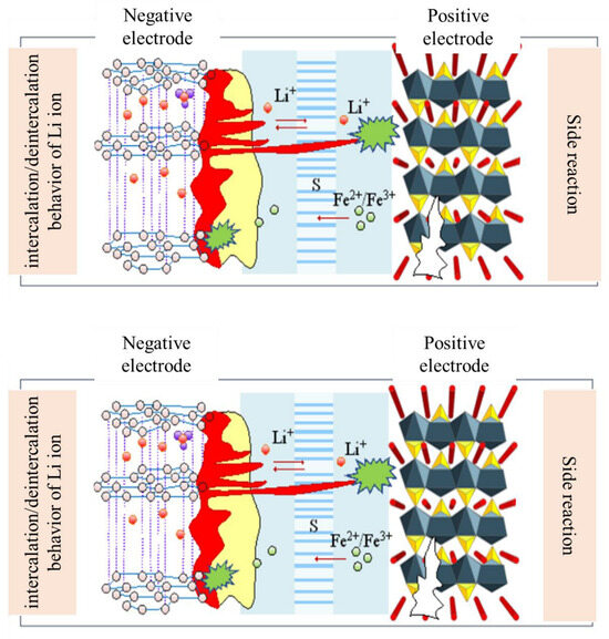 Other aging processes, such as graphite shedding from solventized lithium ion embedding, may potentially have an impact on the cathode of lithium-ion batteries. Additionally, especially at low temperatures, metallic lithium could be deposited on the graphite electrode at lower Li/Li+ potentials. An increased risk of thermal runaway and internal short circuits in the battery can result from persistent dendritic lithium deposition [20].