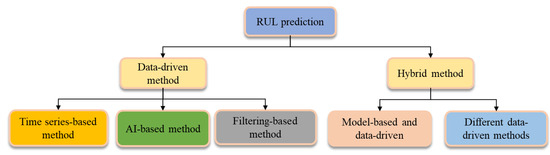 The data-driven strategy is distinguished by avoiding assumptions about the mechanism of battery life decrease and instead analyzing a significant amount of experimental data to forecast the battery life decline. It can analyze previous lithium-ion battery operating data and uncover patterns and trends in the depletion of various batteries under the same load using techniques like data mining and machine learning. The establishment of a prediction model is based on these trends and patterns. It is capable of producing precise forecasting results for the present battery rule. Improved neural network algorithms based on deep learning have gradually become a research hotspot for prediction problems in recent years, and Liu et al. [38] proposed an RUL prediction method for lithium-ion batteries based on a long short-term memory (LSTM) network optimized by the Improved Sparrow Search Algorithm (ISSA) in the field of RUL prediction. The suggested RUL prediction approach was also compared to the support vector regression (SVR), convolutional neural network (CNN), recurrent neural network (RNN), and linear support vector machine (LSTM). The experimental findings demonstrate how much more accurate and reliable the proposed RUL prediction approach is. However, relying too much on data-driven models prevents us from fully utilizing the aging characteristics. Taking into account the capacity regeneration phenomenon in Li-ion battery RUL prediction can help the model perform better at making predictions. The separation of global deterioration and local regeneration aspects of battery capacity sequences using the multi-scale wavelet decomposition technique (WDT) was proposed by Pang et al. [39] as a new method for predicting the RUL of Li-ion batteries. The suggested approach not only captures the capacity renewal phenomenon well, but also has good forecast accuracy and is less affected by various prediction starting points. Furthermore, to fully exploit the time-series properties of the lithium-ion battery data, Gao et al. [40] combined a convolutional neural network (CNN) and a bidirectional long and short-term memory (BiLSTM) neural network to extract deep features of battery capacity data, and they chose the memory function of the BiLSTM neural network to retain key information in the data and predict the trend of variations in the RUL of batteries. It is crucial to remember that the aging battery data drastically restricts the precision and stability of the data-driven algorithm. For the mitigation of the aging effects an adequate precaution on the data-driven method must be implemented while forming battery RUL prediction algorithms. For instance, regular battery maintenance and replacement can be implemented to ensure the data’s quality and freshness. Alternately, more sophisticated and advanced algorithms may be taken into consideration to lessen the influence of data elements.