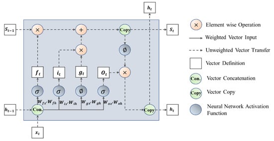 The data-based method does not require a complex mathematical model to mimic the internal aging mechanisms of the supercapacitor, unlike the model-based method, which must advance its operating principle and internal structure. The relevant neural network-based model only requires the input of a significant amount of SC aging parameters connected to its age trend data or the attenuation of data from ultracapacitors for strength and threshold modification. Future scenarios can be evaluated using a network of practices that has been in place for a while. Using fully connected neural networks, Weigert et al. [45] estimated the life cycle of a supercapacitor which had been designed for HEVs and investigated the primary causes of aging. To forecast the RUL of a supercapacitor that uses short charging and discharging curves, a new recursive neural network (SIM RNN) has been developed. The drawback of this SIM RNN algorithm is the long-term dependency of the iteration process. It can be simplified since, if data has been retained for a long period, the gradient becomes diminished and the network is unable to learn new information. A hybrid evolutionary algorithm that mixes long- and short-term memory neural networks was proposed by Zhou et al. The LSTM structure, as depicted in Figure 9, has a memory unit that enables it to retain the crucial states of earlier phases. The LSTM also incorporates an oblivion gate that clears out unnecessary information and resets the memory unit. The long-term dependence and correlations between successive samples of sequential data can be learned by the LSTM. A novel t-time RNN approach that follows time values and adds to the input sequence of a conventional network is discussed in Liu et al.’s study [46], which employed a stacked bidirectional LSTM-RNN model. Researchers have offered a novel deep learning-based technique. This technique, named the deep belief network (DBN), which is a hybrid of Bayesian optimization and Hyperband (BOHB) approaches, has been proposed by Haris et al. When supercapacitor degradation occurs in its early stages, this technique is utilized to forecast the RUL. The RUL prediction model’s development took 54% less time than in earlier experiments. The technique is able to rapidly shorten the input cycle and still needs a lot of information to extract. As a result of the artificial features’ inescapable loss of aging information, the accuracy of the predictive findings is constrained. Additionally, manual feature extraction is laborious because it needs domain-specific expertise and takes a long time to process. A CNN-based end-to-end regularization prediction method is suggested in the literature [47]. This approach uses far less input data and is more accurate. The requirement for data is effectively reduced by this method, and the prediction accuracy is increased, both of which are beneficial for supercapacitor diagnosis and prediction. Predicting energy storage life and discharge actions via a data-driven tactic does not entail physical component modeling. The main goal is to find out the relationship of measured data and the respective element degradation. This method does not require a thorough examination of the internal chemicals or side reaction interference.