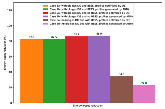 - The use of controllable DG can reduce power losses in the distribution system and in the exchange with the higher-level system much more than the use of BESS alone.
