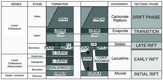 Stratigraphic column of the Congo and Cabinda Basin [12].