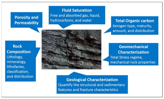 To identify areas with higher prospective values, a comprehensive unconventional reservoir characterization spanning the entire basin is imperative. This involves the quantification of a myriad of fluid and rock properties, including petrophysics, geology, geophysics, engineering, geomechanical properties, and geochemistry. Figure 3 shows how the attributes of source rock reservoirs can be classified to ascertain the requisite rock or fluid properties and their measurement methodologies [13].