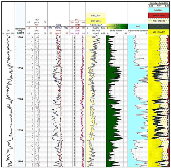 - Peeters, M.; Visser, R. A comparison of petrophysical evaluation packages: LOGIC, FLAME, ELAN, OPTIMA, and ULTRA. Log Anal. 1991, 32, 350–357. [Google Scholar]