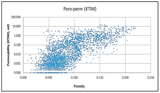The generation of a velocity deviation log (VDL) allows for the subdivision of reservoir pore types into three distinct groups. The sonic log and the neutron-density log are both components of the synthetic log known as the velocity deviation log. The VDL is used to identify the pore types present in reservoir rocks. Both tracing the downhole distribution of diagenetic processes and estimating the changes in permeability may be accomplished with the use of the log, as is illustrated in Figure 15 [30]. The VDL can be calculated by making use of the following equation:
