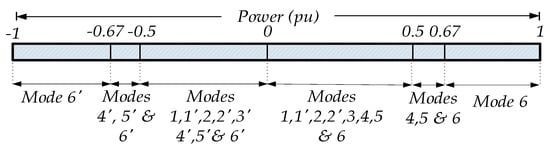 Considering all potential combinations of phase shifts D1, D2 and D3, full, partial and no overlaps of transformer terminal voltage waveforms give rise to six different switching modes for forward power flow, and their complements for reverse power flow. Importantly, it is the modes’ boundaries that set the number of TPS modes. In this section, a comprehensive analysis of the converter performance indices will be performed for each mode. TPS control involves different operating modes, in addition to loading condition (whether the converter is lightly or heavily loaded).