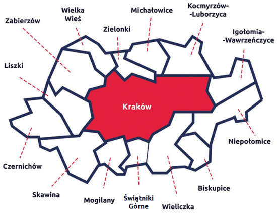 Figure 2. Municipalities belonging to the Krakow Metropolitan Area [40].