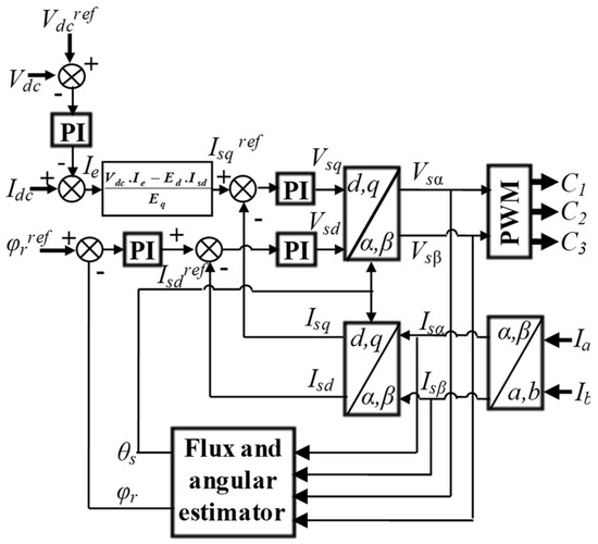 From the previous equations and the block diagram and by considering that the motor current loop dynamic is faster than the bus voltage dynamic, the cascaded control structure of Figure 6 is proposed.
