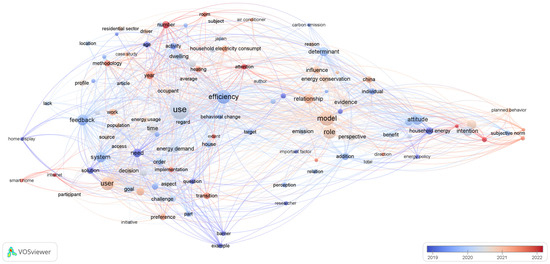 As for the selected records, the observations of the VOSviewer maps (Figure 5, Figure 6 and Figure 7) solicit some relevant reflections. It strongly emerges, as confirmed by the literature investigation, that there is a limited connection between the topics social and technical dimensions in existing studies. This has largely been identified as a significant barrier to effective advancements in the field, as well as a clear prevalence of technologically driven approaches to users’ energy savings at home. Nonetheless, the hot topic visualization in Figure 6 shows a slightly promising shift in recent years toward social aspects. Terms such as ‘solution’ seem now to be outdated as it was largely proven to be ineffective in solving such a complex and multifaceted issue, that is the adoption of energy savings in the residential sector. An abundance of terms can be observed, such as ‘feedback’, ‘preference’, and ‘role’, supported by ‘smart home’ and ‘internet’.
