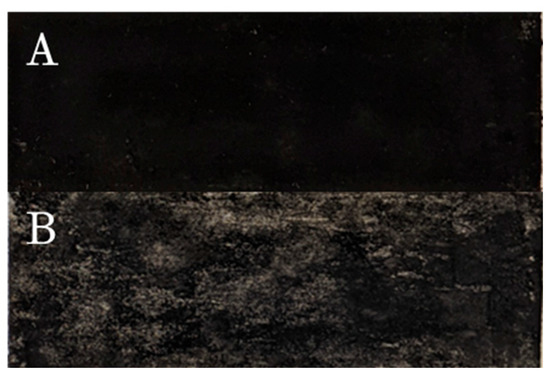 Picture of the two sides of a double-sided MPL-coated GDL. Featuring Ketjenblack. (A) 1.25 mg/cm2; (B) 0.25 mg/cm2.