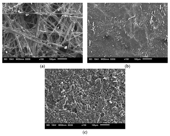 SEM images for (a) uncoated Toray GDL, (b) single-sided coated GDL with 1.25 mg/cm2 Vulcan black and (c) single-sided coated GDL with 1.25 mg/cm2 Ketjenblack.