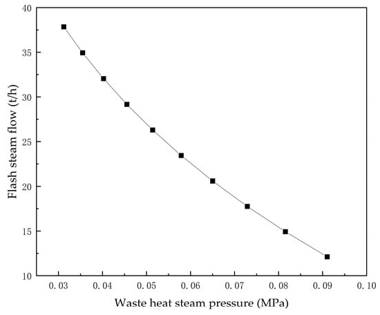 - Within the investigated range, as the waste heat steam pressure varies from 0.03 MPa to 0.09 MPa, the minimum flow rate of flash steam is 0.52 t/h, whereas the maximum flow rate reaches 37.85 t/h.