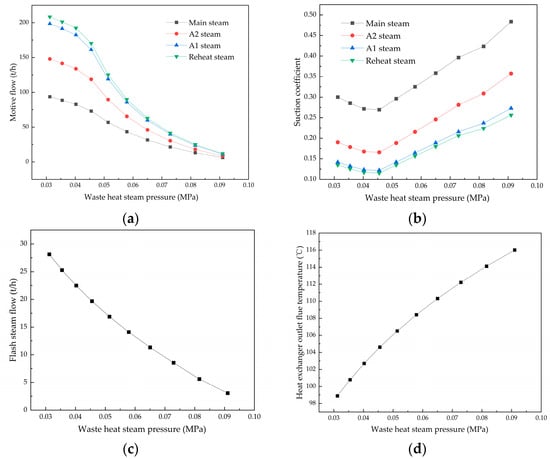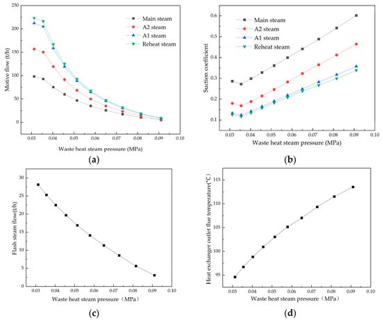 3.1.1. The Relationship between Motive Flow and Waste Heat Steam Pressure