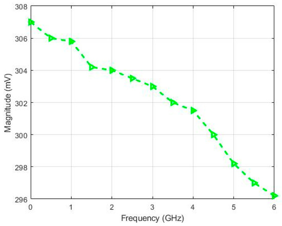 The frequency response of a single-stage limiting cell is shown in Figure 6; its gain was adjusted to be 0.3 and the operating frequency is 5.8 GHz.
