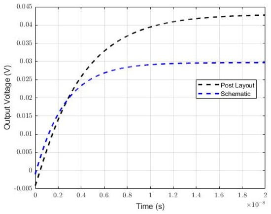 Vout vs. Vin of the schematic simulation and post-layout extracted simulation.