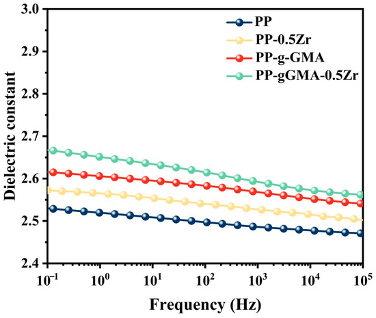 Dielectric constant of neat PP, PP-g-GMA, PP-0.5Zr, and PP-gGMA-0.5Zr.