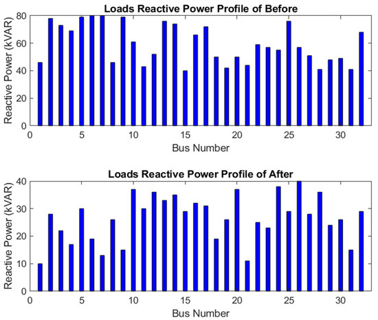 Load reactive power profiles before and after the changes to the grid.