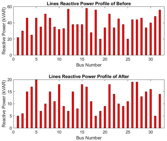 Line reactive power profiles before and after the changes to the grid.