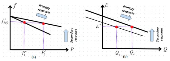 The utilization of “secondary” integral controllers aims to effectively mitigate the system parameter variations (voltage and frequency) that are generated by the droop controllers (11) and (12) in a steady-state approach.