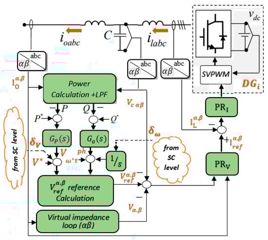 PR virtual impedance block diagram of the droop controller in αβ-frames.