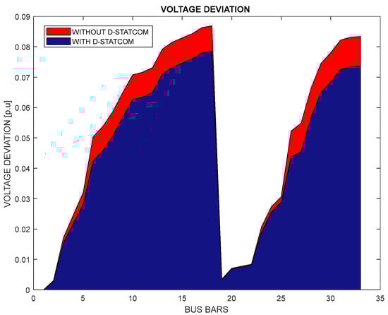 Figure 6. Voltage deviation in scenario 2 for the 33-bar system.