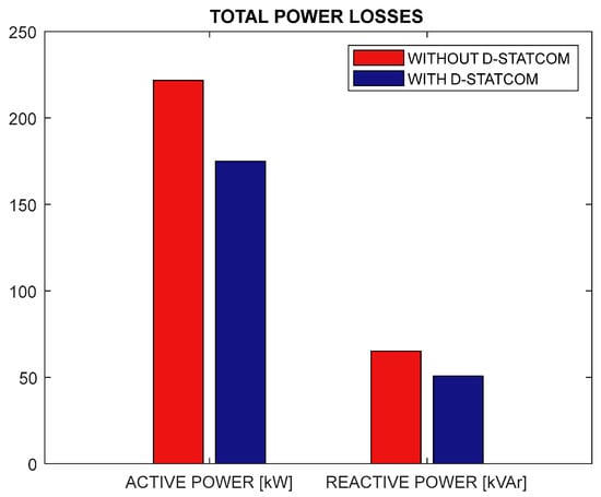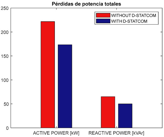 In addition to the improvement in the voltage profile, there is evidence of a reduction in the power losses of the system under study; this reduction can be seen in Figure 5.