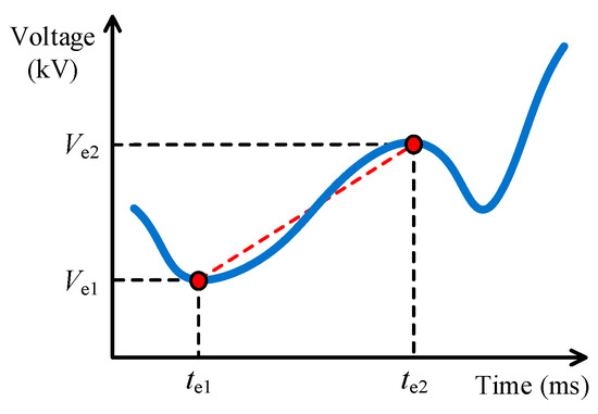 where is the h-th voltage harmonic component. The RVR is defined as the absolute slope of the line connecting two consecutive local extrema in the voltage waveform, as demonstrated in Figure 4 and Equation (8). According to Figure 4, RVR is yielded by: