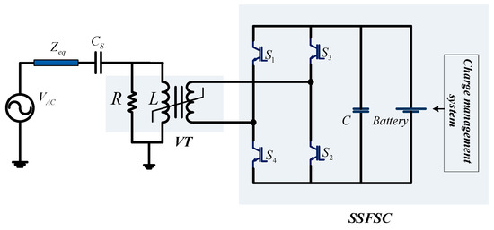 Additionally, the secondary winding current, , can be mathematically determined using Equation (11), from which the magnetic flux, , associated with the secondary winding can be derived from the secondary side voltage, , and the voltage across the capacitor unit in SSFSC, , as represented in Equation (12).