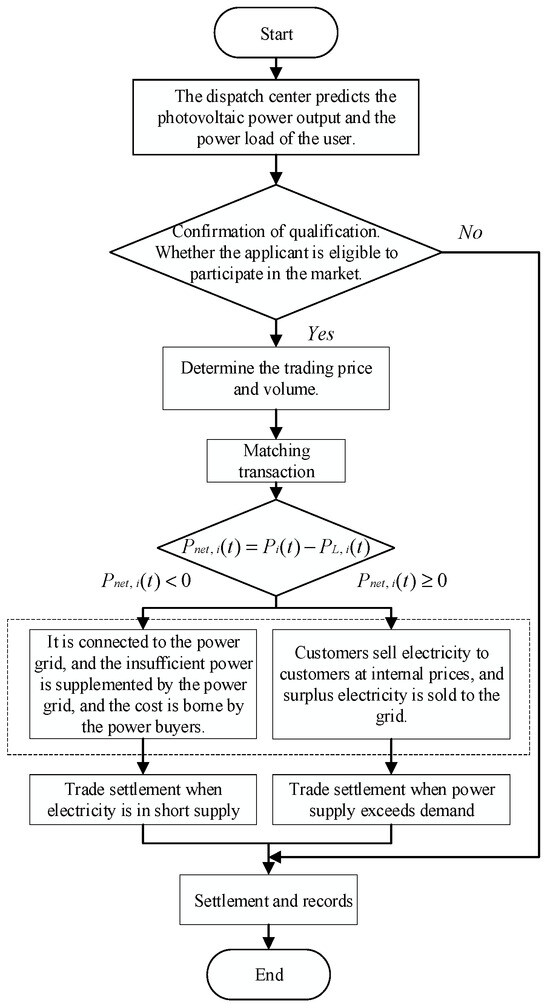 - Finally, transaction contracts are established via the blockchain, The trading mechanism of trading power and trading tariff is recorded into the system at the moment of real-time trading, which is accessible and cannot be tampered with. The specific transaction process is shown in Figure 4.