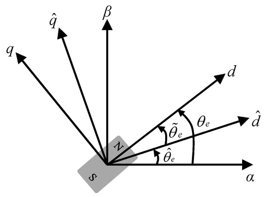 Assuming that the high-frequency injection signal is in the estimated axial coordinate system, the relationship between these coordinate systems is shown in Figure 1. The rotor angles in the figure are all electrical angle information, where is the actual angle of the motor rotor, .