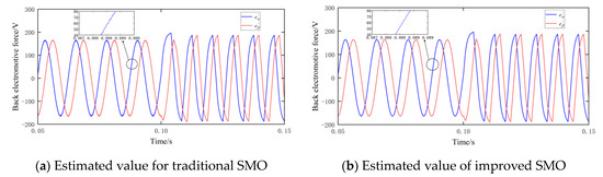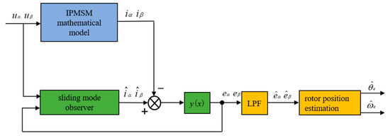 Equation (16) is employed to substitute the saturation function in the traditional SMO, which is filtered to obtain the estimation of the back electromotive force, and thus get the rotor information. In this case, the framework of the improved SMO is presented in Figure 4.