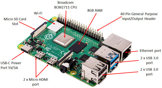 The Raspberry Pi, shown in Figure 4, is a programmable compact computer developed by the Raspberry Pi Foundation. It is widely used for various purposes, including home automation, robotics, etc.