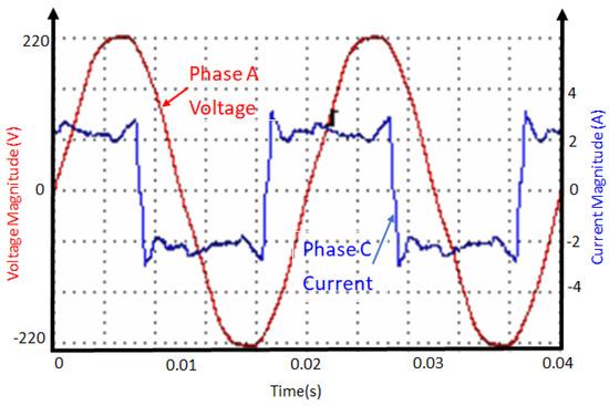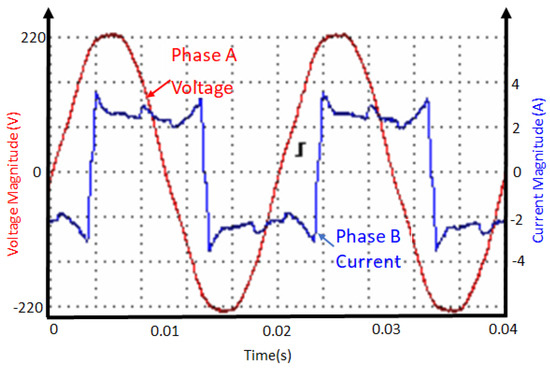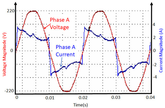 The power analyzer records the voltage and the current waveforms as the system conditions change. Figure 14, Figure 15, Figure 16, Figure 17, Figure 18, Figure 19, Figure 20, Figure 21, Figure 22, Figure 23, Figure 24, Figure 25, Figure 26, Figure 27 and Figure 28 illustrate snapshots of the system under various network conditions.