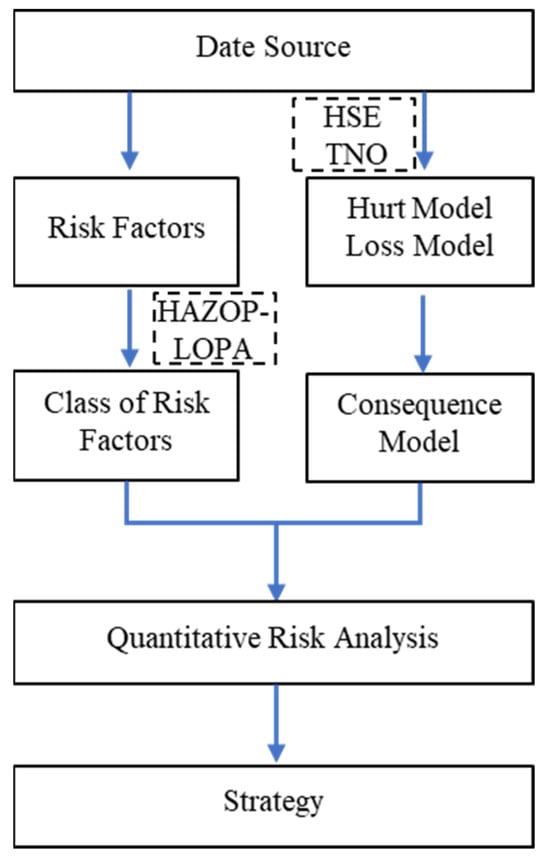 Hazard and Operability Analysis (HAZOP) is a systematic and structured technique used to identify, assess, and mitigate potential risks and hazards in complex processes. The resulting data from the HAZOP analysis are used as inputs to the Protective Layer Analysis (LOPA) to simulate the accident site in a variety of scenarios. Then, the risk factors are graded according to the frequency and impact of the risk in the accident. Combined with the probability of risk occurrence, experimental data, and loss model, the consequences model caused by risk factors is established. The experimental data include hydrogen diffusion concentration distribution data, combustion explosion temperature data, pressure data, etc. The loss models include thermal damage model, overpressure model, asphyxiation model, and so on.