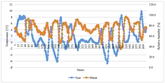 Figure 2. Variations in outdoor temperature (Tout) and relative humidity values (Rhout).