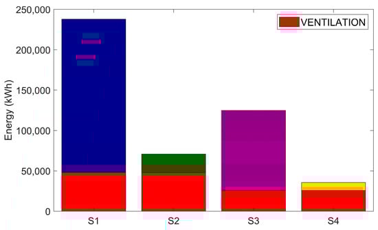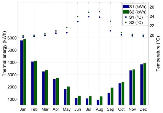 In the last simulation, the effect of the actual renovation carried out in Bialystok has been examined, comparing it with the provisions established in Italy for public buildings in 2019. This comparison allows one to evaluate whether the energy retrofit measures adopted in Bialystok are aligned with or exceed the prevailing regulations in Italy. Concerning case S5, in this analysis, only the performance and regulation of the building during the heating season have been investigated; indeed, the Regional Decree [