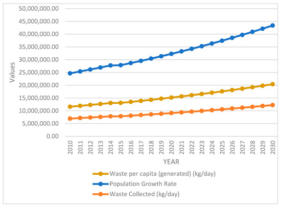 Population growth and rate of MSW generation in Kumasi [4,18].