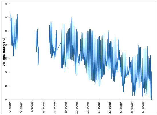 The data in Figure 10 correspond to the air temperatures from 13 August 2019 to December 31 of the same year. It was observed that August and September have the highest temperatures and, from October, begin to decline until reaching the lowest point in December.
