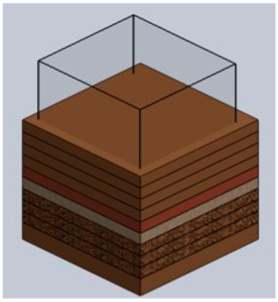 The simulation process will be made in two steps, simulation and stratigraphic column validation and simulation of the heat exchanger in each soil layer. The model of the stratigraphic column consists of 10 soil layers, each one with their own estimated properties and one meter deep, the remaining ones in the computational domain above the surface layer contain air with environmental conditions such as ambient temperature, solar radiation, atmospheric pressure, and wind speed. The 3D model is presented in Figure 11.