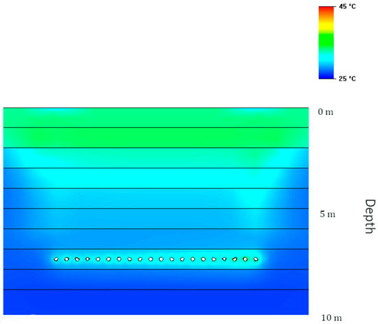 Stratigraphic simulation with buried exchanger at 7.5 m deep.