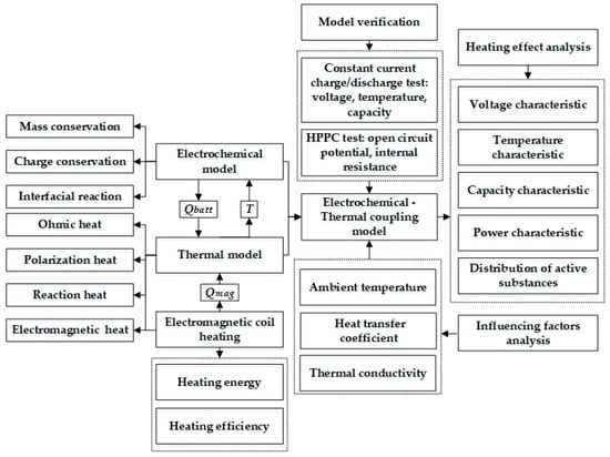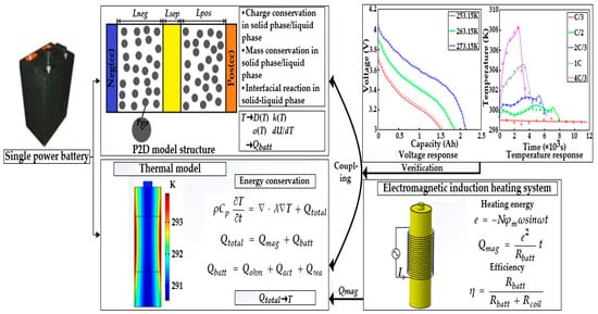 Figure 4 presents the framework of the ETCM composed of an electrochemical model, thermal model, and electromagnetic induction heating module, which was validated against the experimental results under various ambient temperature conditions.